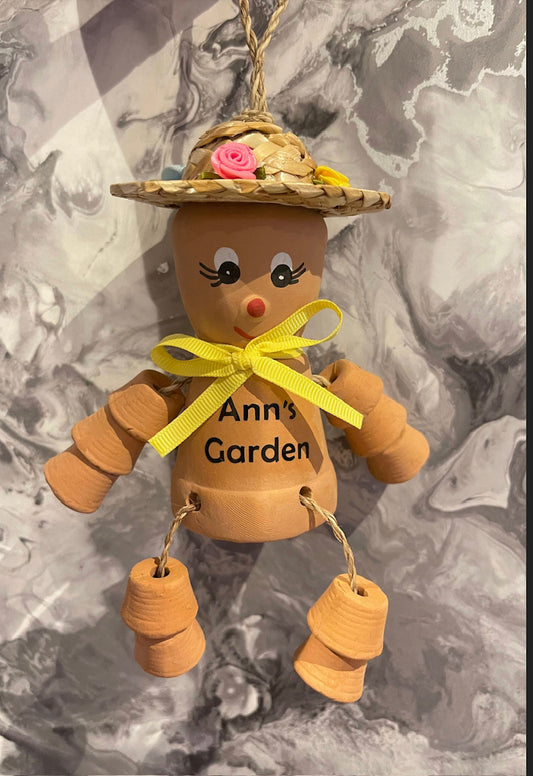 Personalised Terracotta Plant Pot Man or Lady Garden Ornaments Includes Ribbon Of Choice