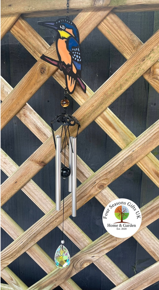 Beautiful Kingfisher Bird Sun-catcher Wind chime With Crystal Effect Dropper