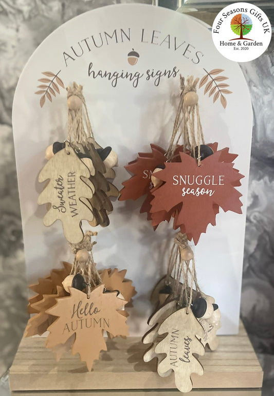 Autumn Leaves Wooden Decorative Hanging Signs, Home Decor , Window Tree Decorations, Cosy Season, Rustic Fall Ornaments Gifts - 4 Styles