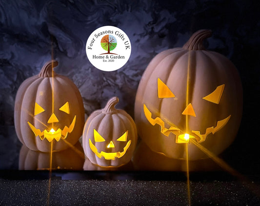 Terracotta Pumpkin Jack-O-Lantern Home or Garden Tealight Candle Holder Ornament, Spooky Halloween Characters, Autumn Decorations Gifts
