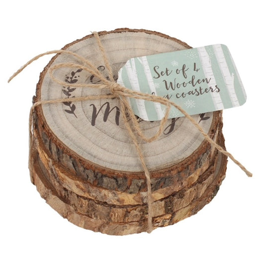 Set of Four Wooden Log Effect Eat, Drink & Be Merry Drink Coasters