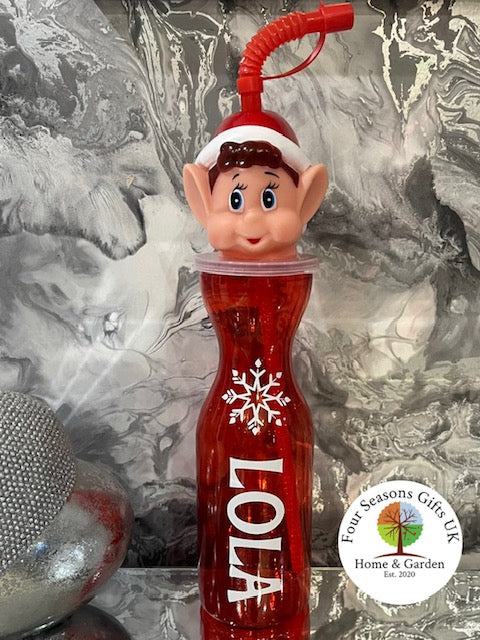 Personalised Christmas Character Drinking Bottle With Straw