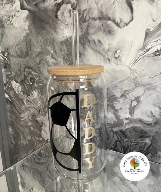 Football Any Name Personalised 16oz Drinking Glass Tumbler Beer Can Cup With Reusable Straw Iced Coffee Mug Football Fan Birthday Gifts Black & Gold