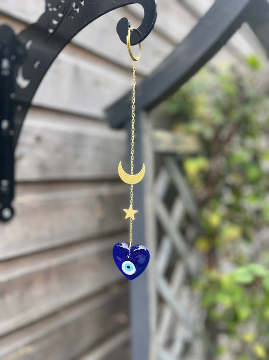 GLASS BLUE EVIL EYE MOON STAR HANGING WINDOW ORNAMENT HOME GARDEN DECOR GIFTS