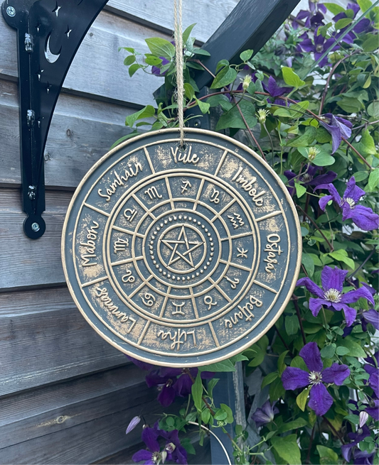 Bronze Rustic Wheel of the Year Wall Plaque – Seasons Garden Decor, Terracotta Pottery Anniversary Gift, Spiritual Wiccan Hanging Wall Decor