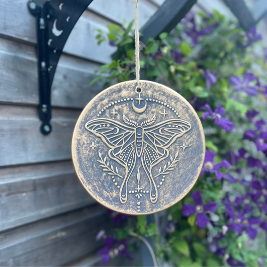 Bronze Rustic Luna Moth Wall Plaque – Celestial Garden Decor, Terracotta Pottery Anniversary Gift, Mystical Spiritual Hanging Wall Decor