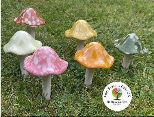 Set of 6 Ceramic Glazed Toadstools Mushroom FlowerPot Plant Pot Decorative Fairy Garden Stake Ornaments