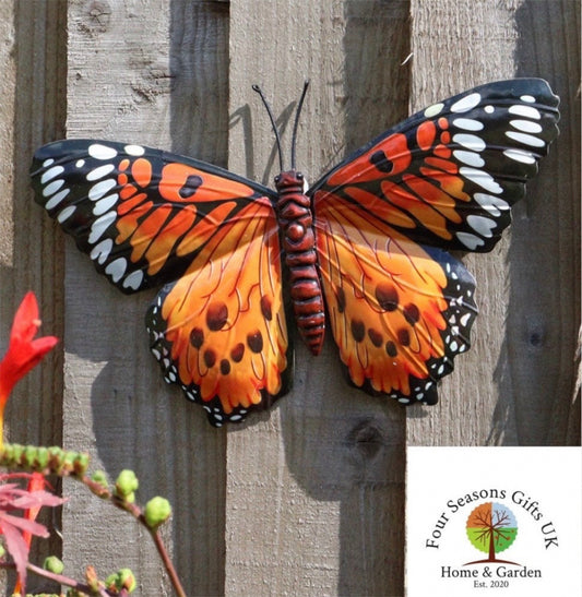Giant 49cm x 33cm Decorative Butterfly Metal Garden Wall Art Plaques, Brighten up Fences, Walls, Sheds, Summerhouses etc. - 2 Colours