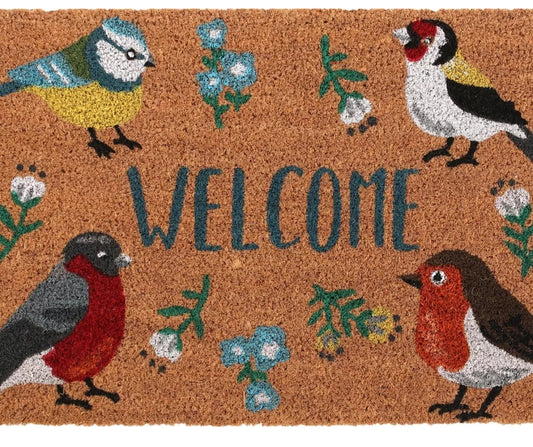 British Birds Robin Blue Tit Goldfinch Coir Non Slip Doormat Autumn Decor Gifts