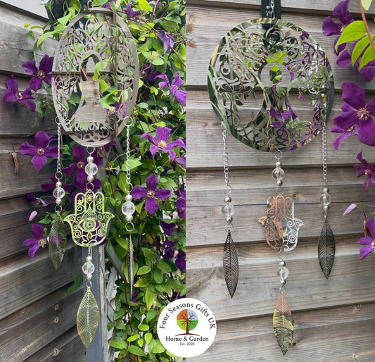 Buddha & Hamsa Hand Stainless Steel Mirrored Dreamcatcher Wind Spinner Sun-catcher Hanging Garden Decorative Ornament