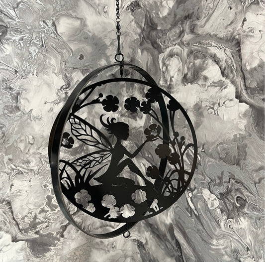 Floral Fairy Silhouette Orbit Wind Spinner Garden Decoration