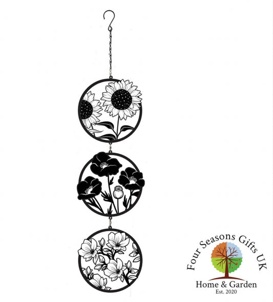 70cm Flower Design Silhouette Trio Orbit Wind Spinning Hanging Garden Decoration - Sunflower, Poppy