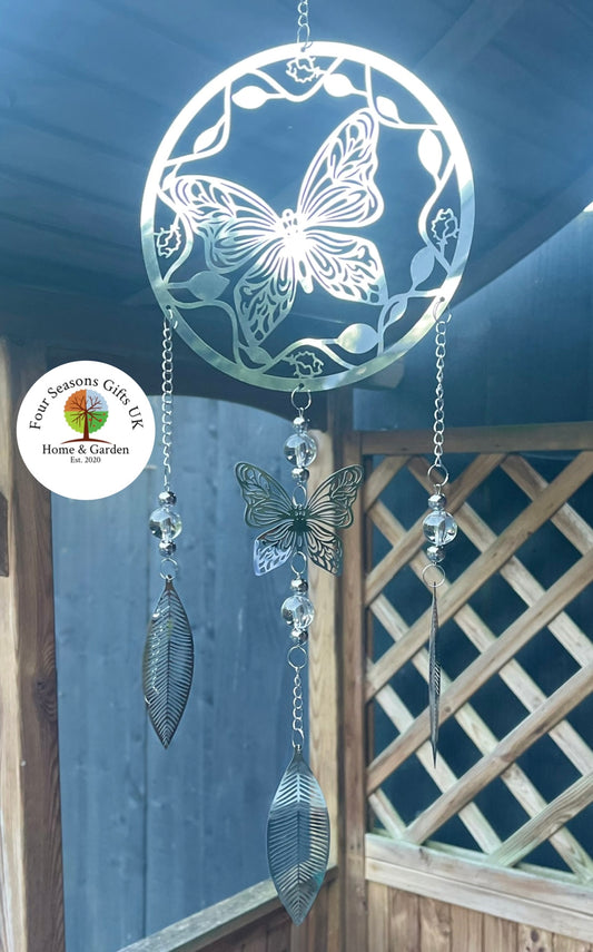 Butterfly Stainless Steel Mirrored Dreamcatcher Wind Spinner Sun-catcher Hanging Garden Decorative Ornament