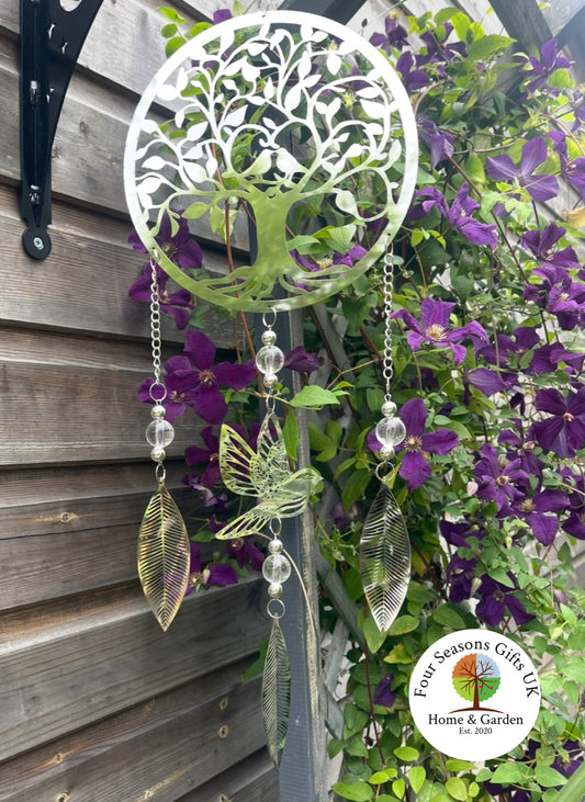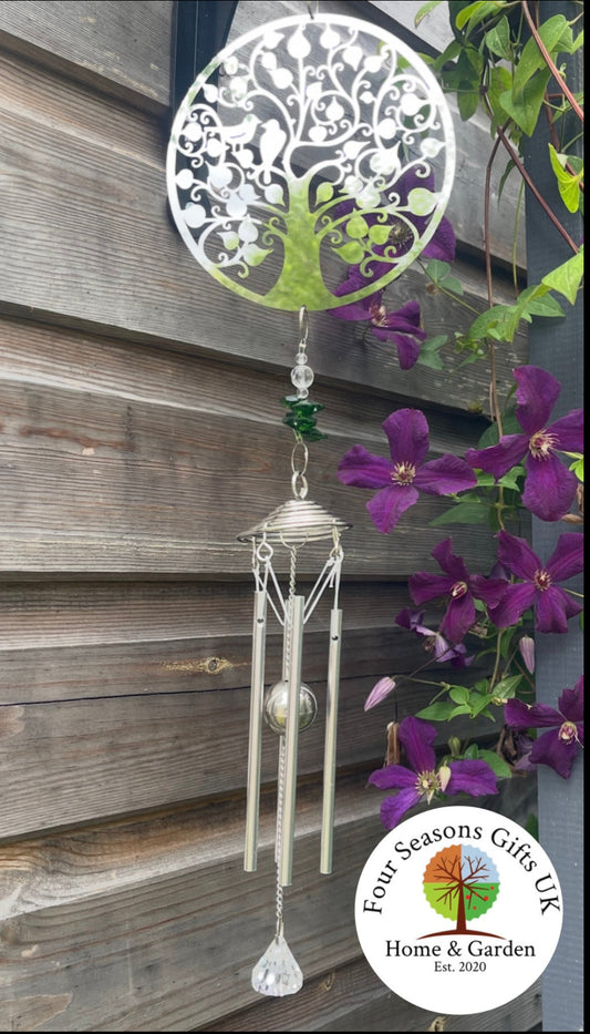 Tree of Life & Birds Stainless Steel Mirrored Wind Chime Spinner Sun-catcher Hanging Garden Decorative Ornament