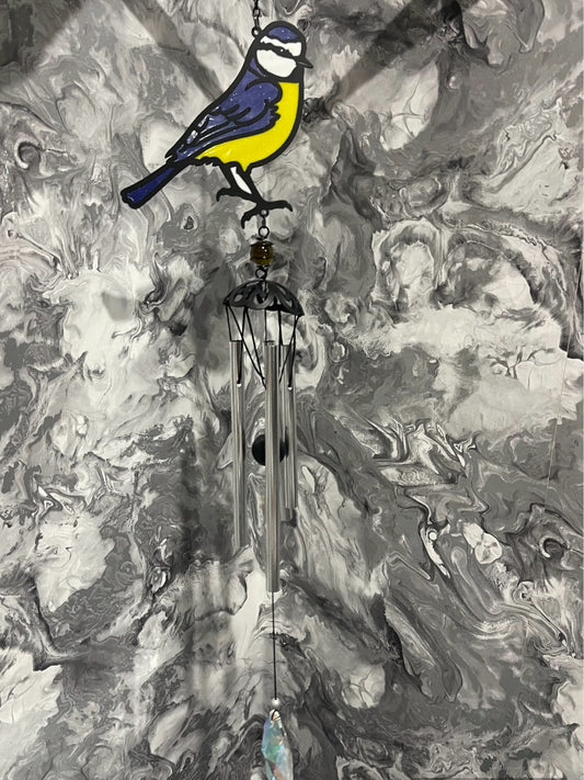 Blue Tit Bird Sun-catcher Wind chime With Crystal Effect Dropper