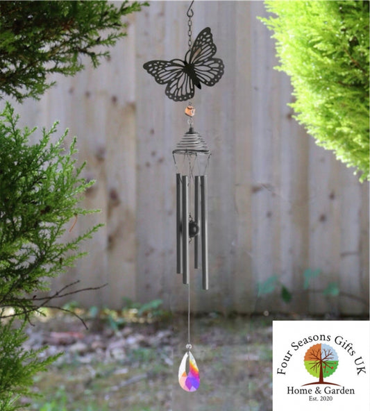 Beautiful Butterfly Silhouette Design Windchime With Crystal Effect Dropper