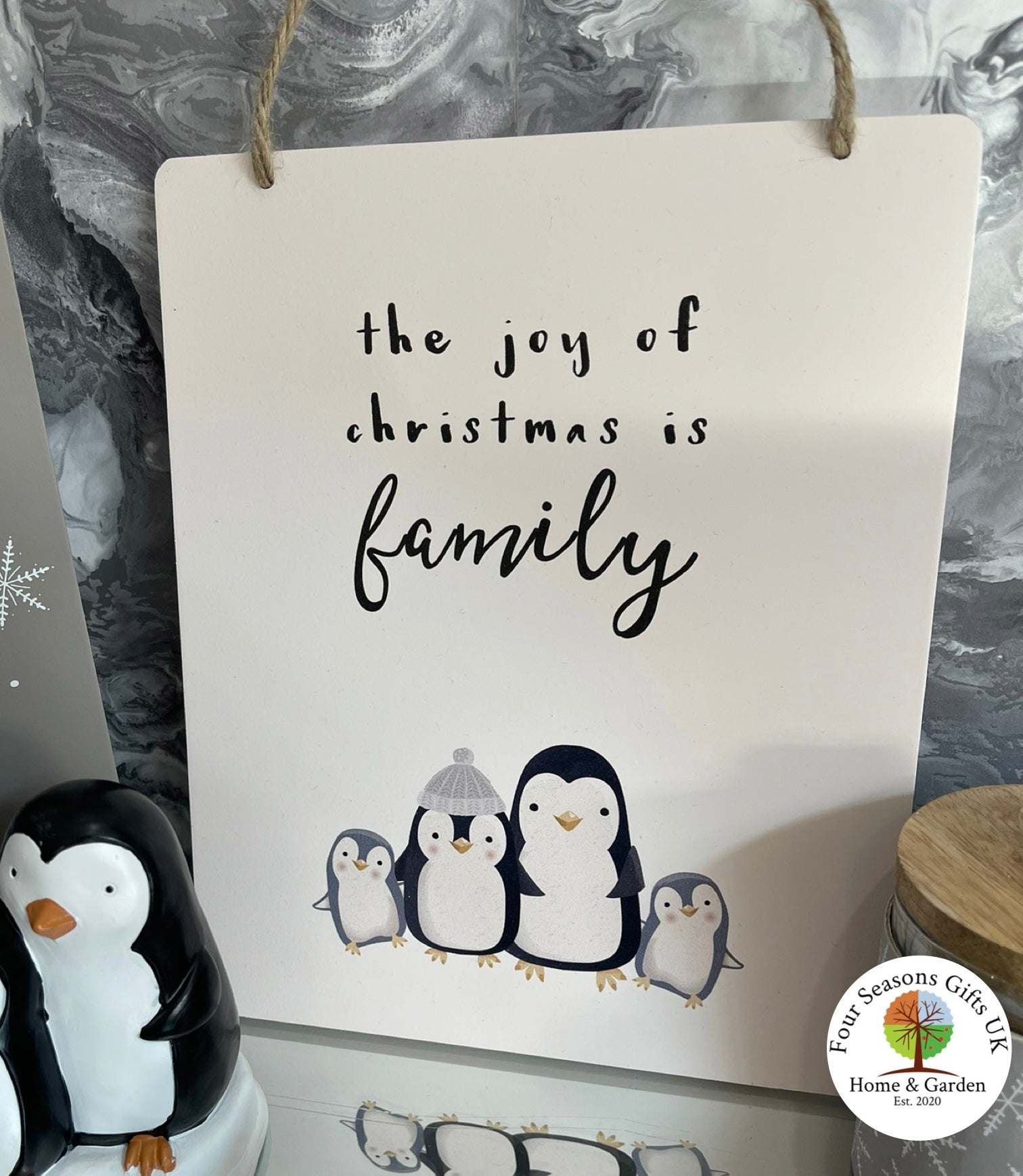Cute Festive Penguin Hanging Family Quote Wall Sign Christmas Ornament Decoration