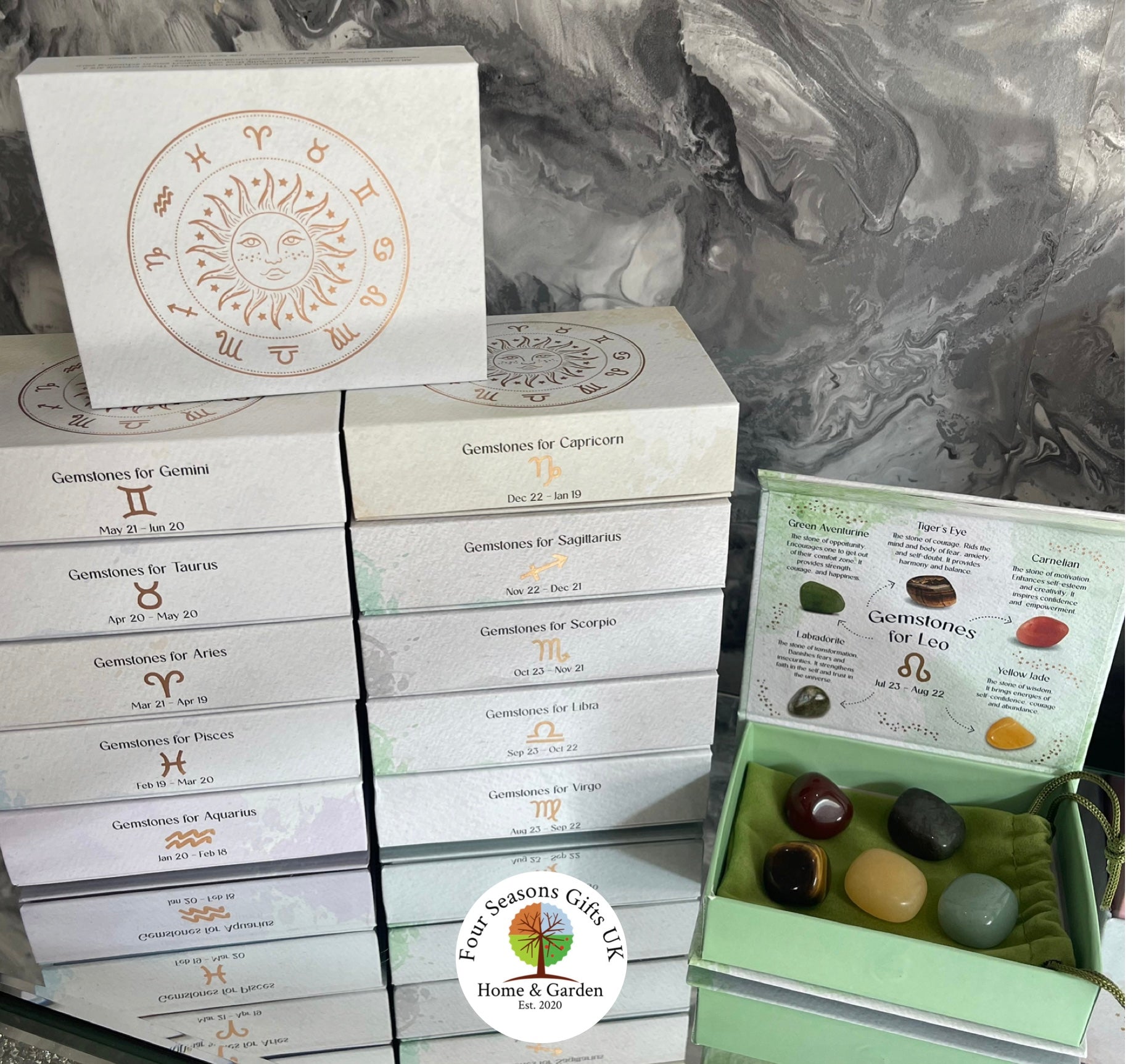Stunning sets of five crystal tumblestones inspired to complement each sign of the zodiac.