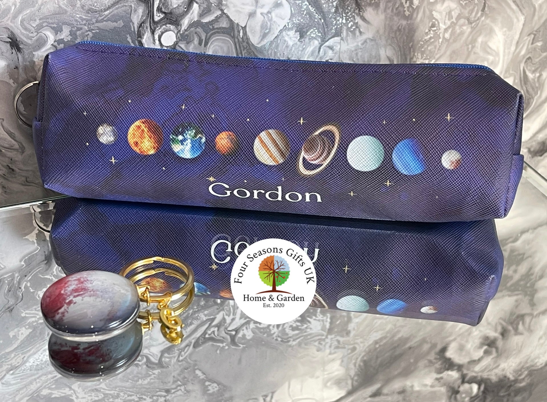 Matching personalised keyring in any design of the 9 planets, please choose from drop down menu.