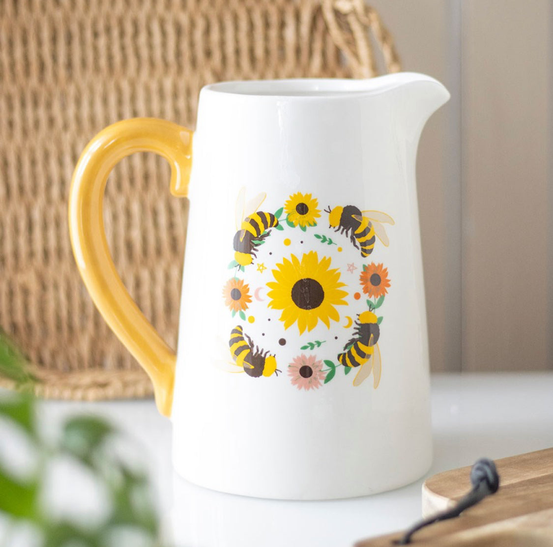 The round-shaped jug is adorned with Sunflowers & Bees, perfect for all occasions and particularly suited for a Spring/Summer theme.