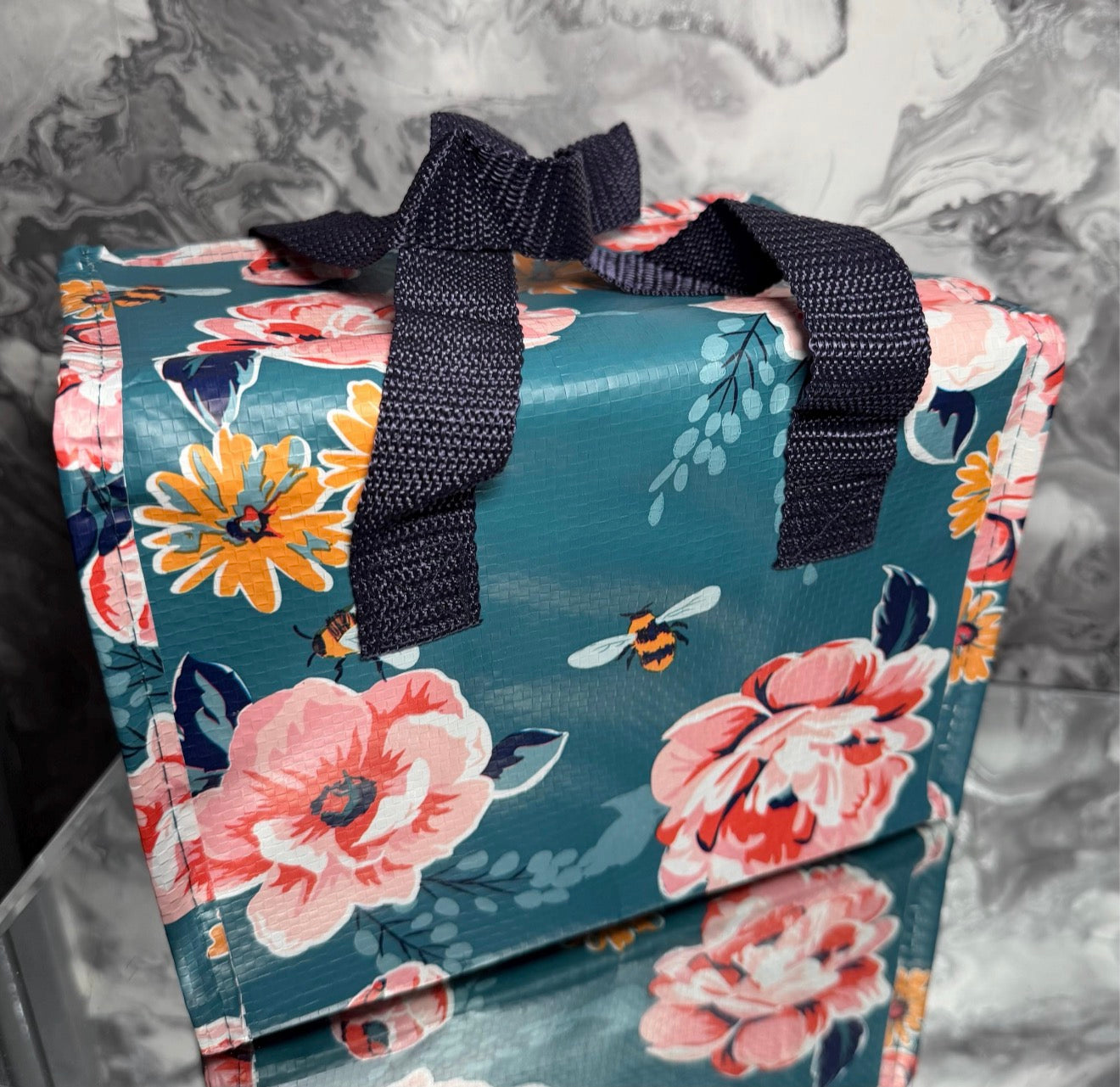 A pretty and practical insulated lunch bag made from recycled plastic – perfect for work, school or days out.
