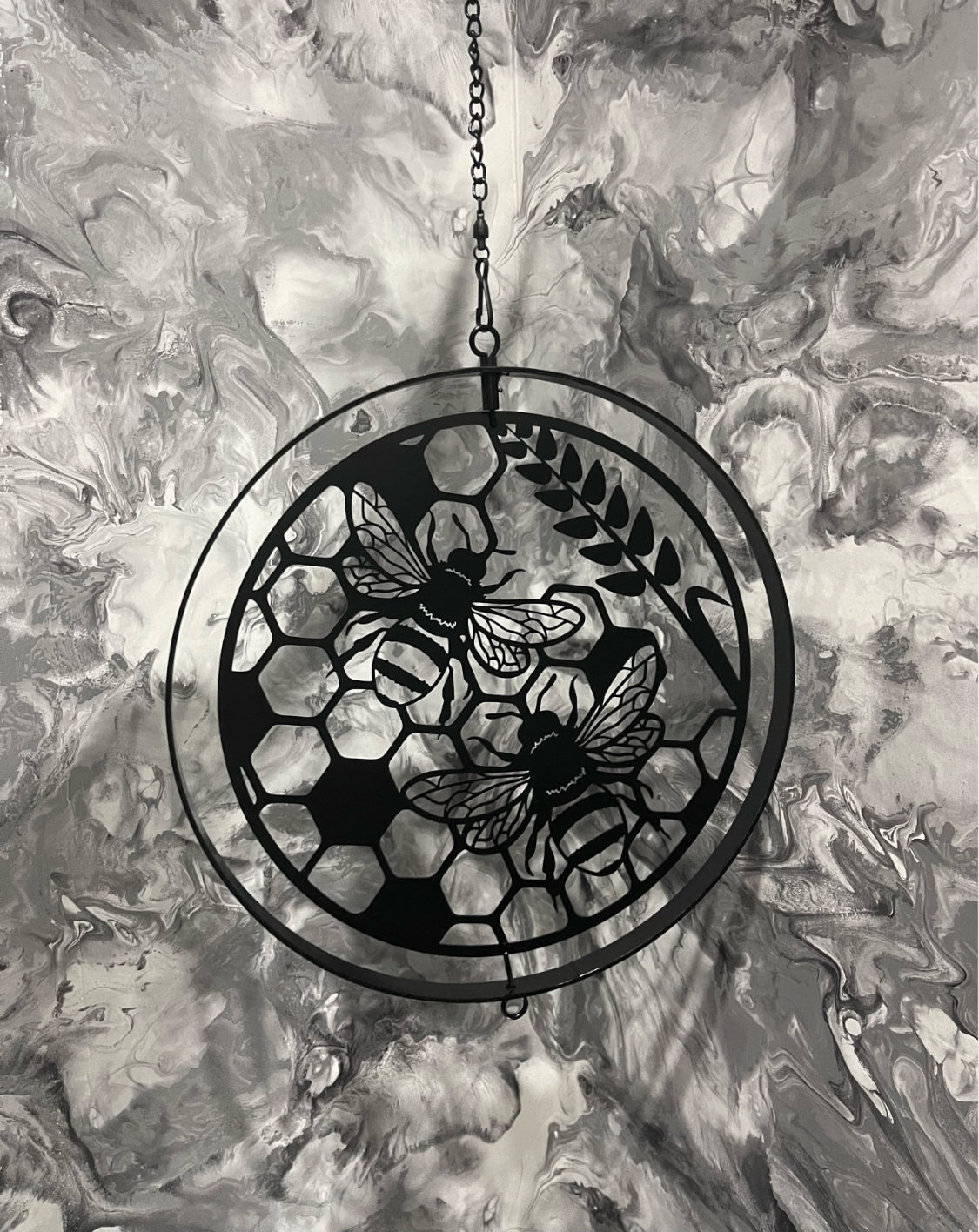 Honeybee & Honeycomb Bee Silhouette Orbit Wind Spinner Garden Decoration
